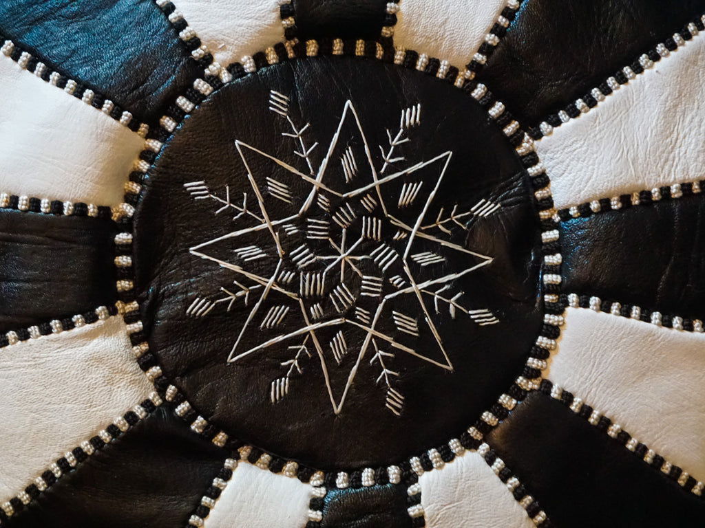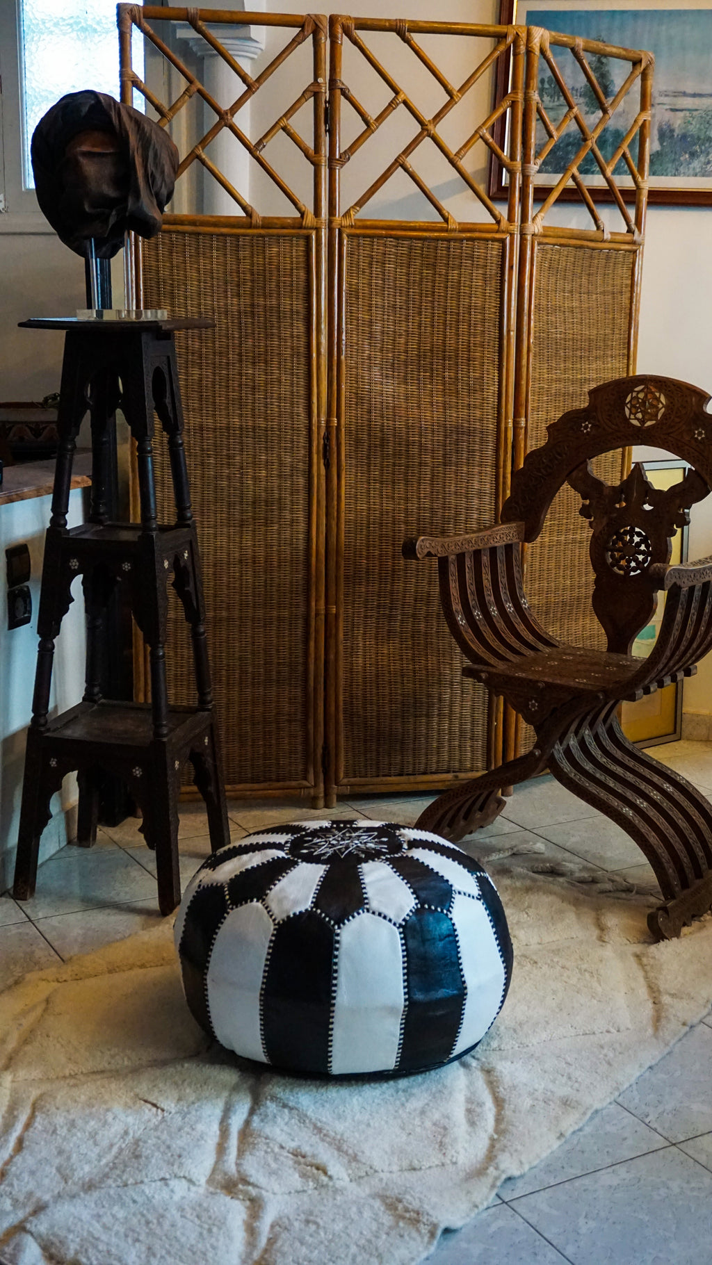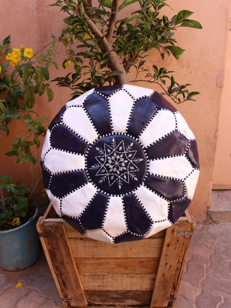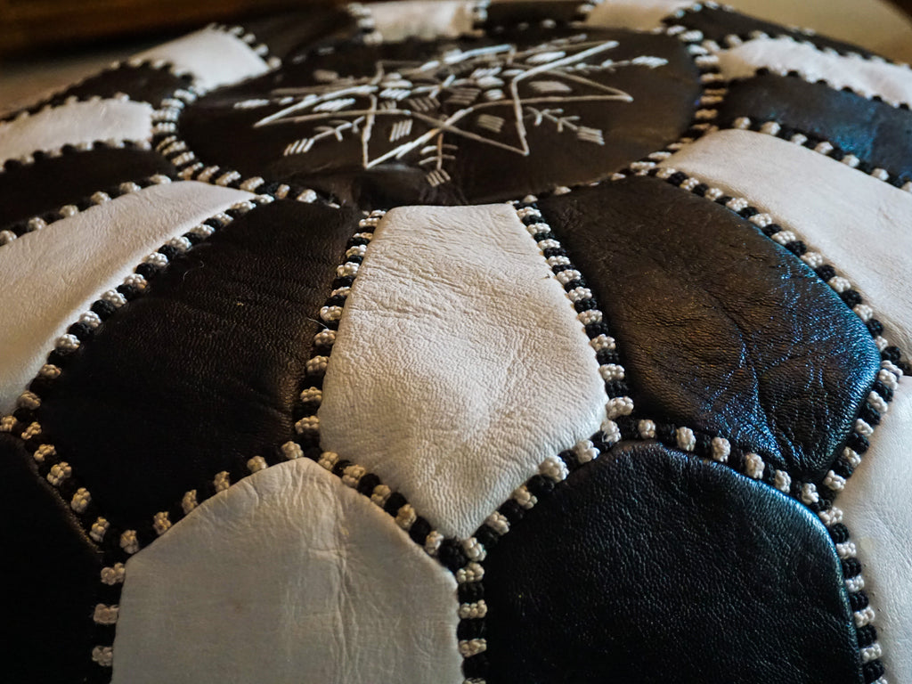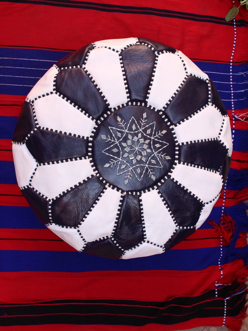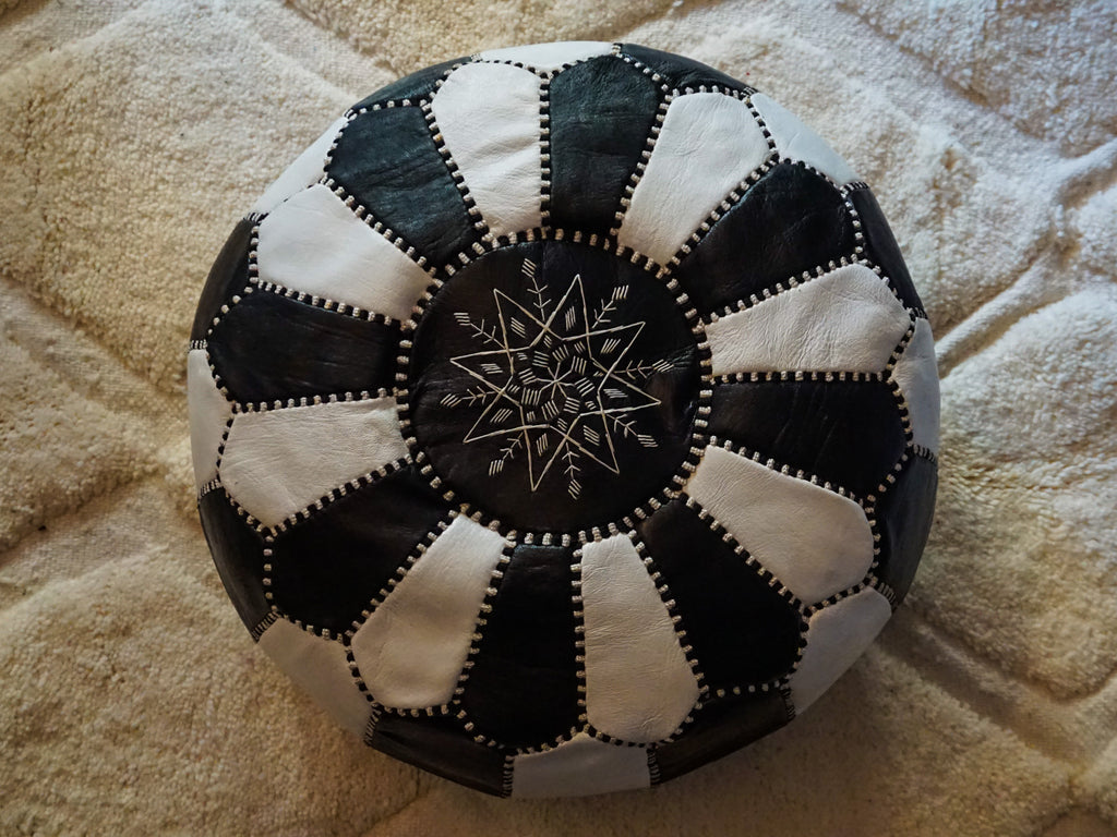 BLACK & WHITE MOROCCAN LEATHER POUF