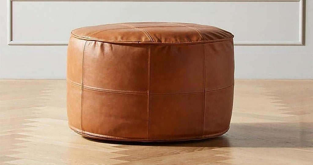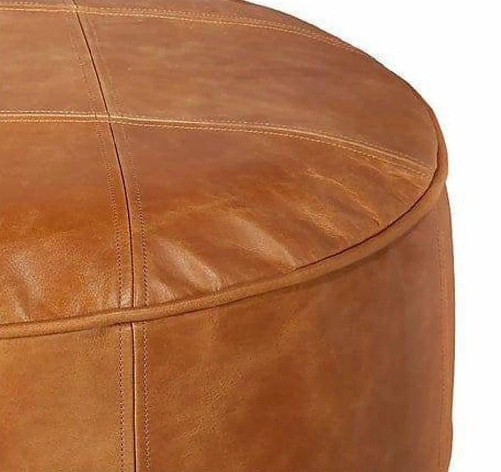 Our Moroccan Partner Artisans provide us with leather ottomans of the highest quality. Handcrafted by the best craftsmen in Marrakech. Our Moroccan Ottoman is made of 100% high quality tanned goat leather colored with natural ingredients. This type of leather and treatment gives the pouf a sweet smell reminiscent of the merry scent of Berber souks, not as strong as the smell of Lamb Leather very often used for poor quality ottomans.