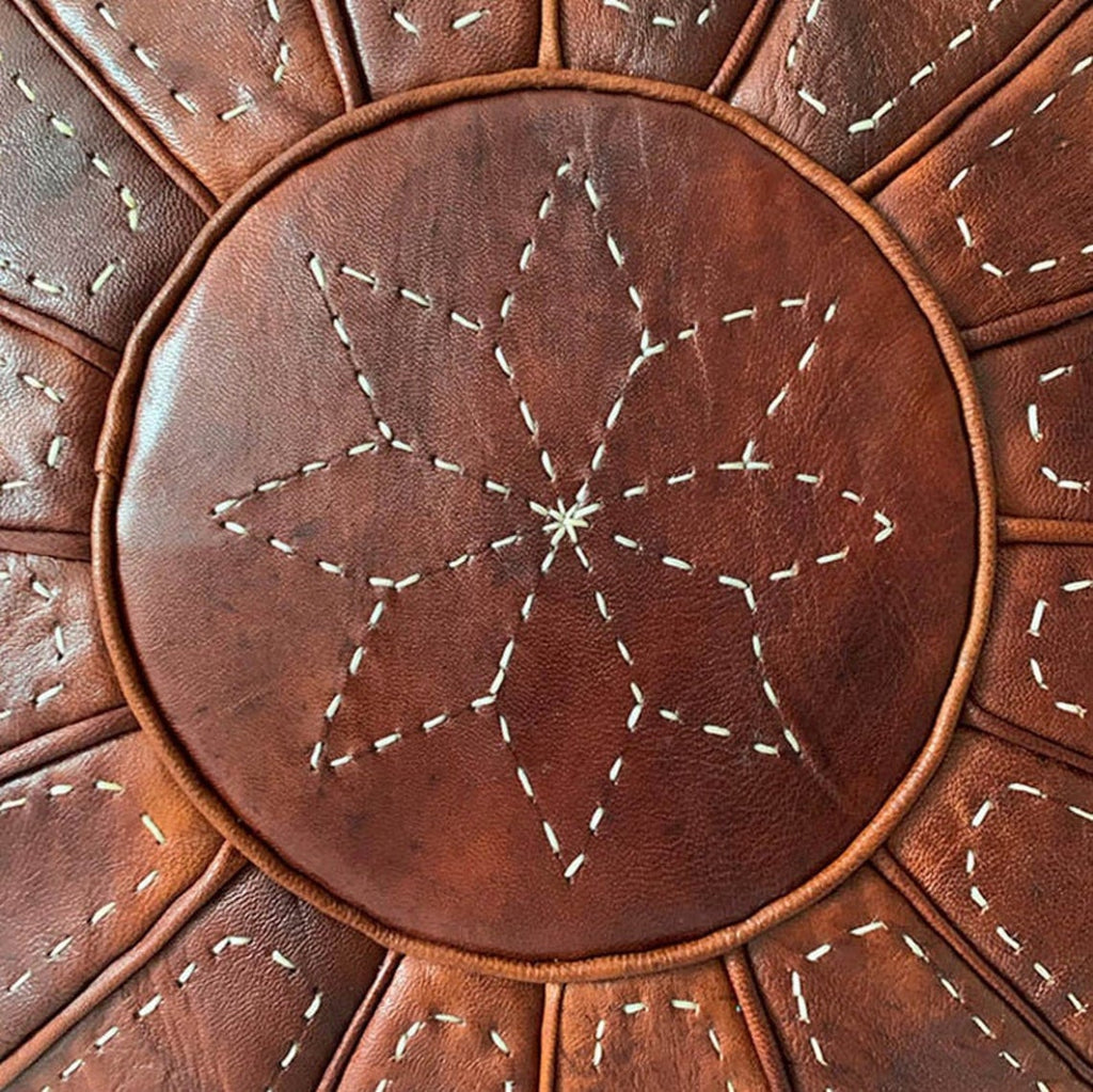 Our Moroccan Partner Artisans provide us with leather ottomans of the highest quality. Handcrafted by the best craftsmen in Marrakech. Our Moroccan Ottoman is made of 100% high quality tanned goat leather colored with natural ingredients. This type of leather and treatment gives the pouf a sweet smell reminiscent of the merry scent of Berber souks, not as strong as the smell of Lamb Leather very often used for poor quality ottomans.