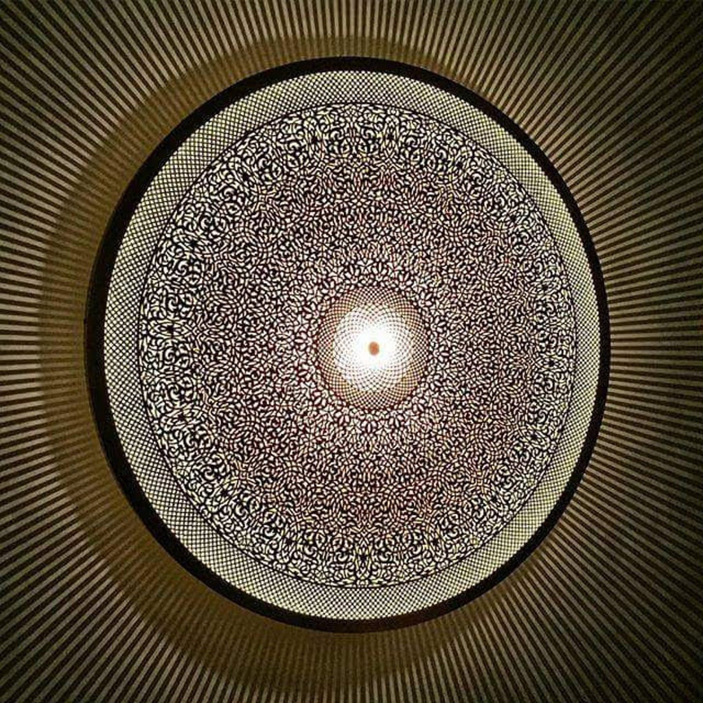 A wall sconce in the form of a SUN between 50 cm/19.7 in and 70 cm/27.5 in diameter, which will add a touch of craftsmanship to your interior by diffusing the most captivating patterns through the walls and ceilings, and illuminating the room.