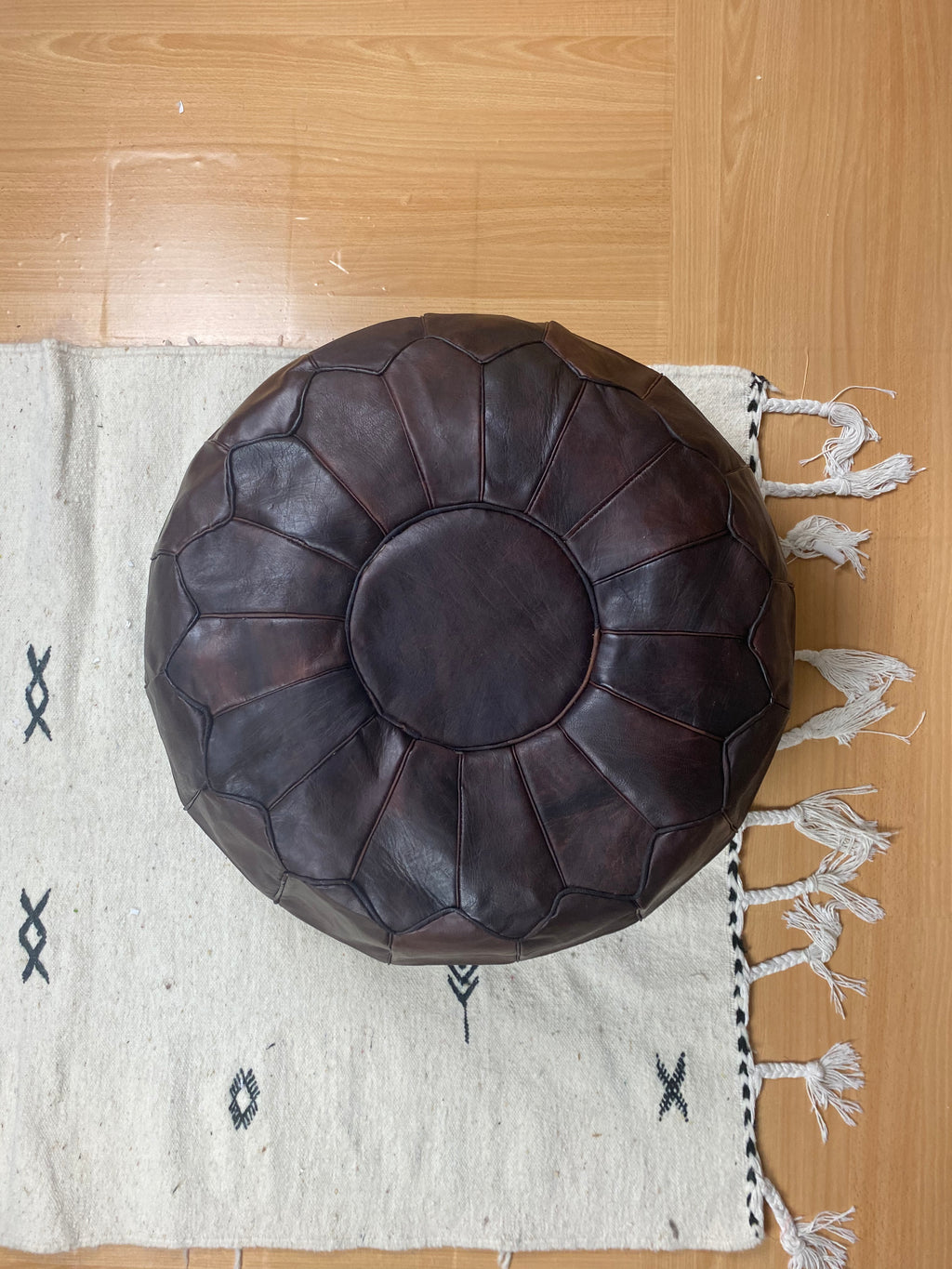 MODEL A2 , DARK BROWN MOROCCAN LEATHER POUF